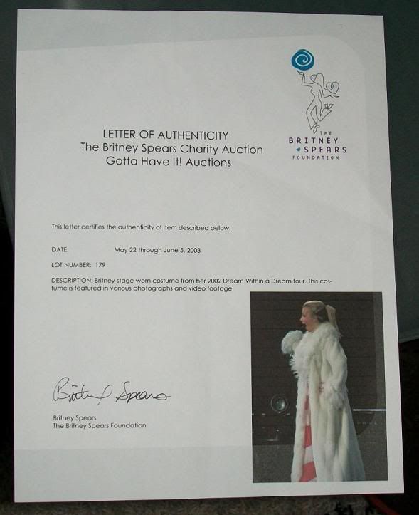 O longo casaco que Britney Spears utilizou na canção Lucky durante a Dream Within A Dream Tour encontra-se à venda no eBay por $4,999.99 dólares.